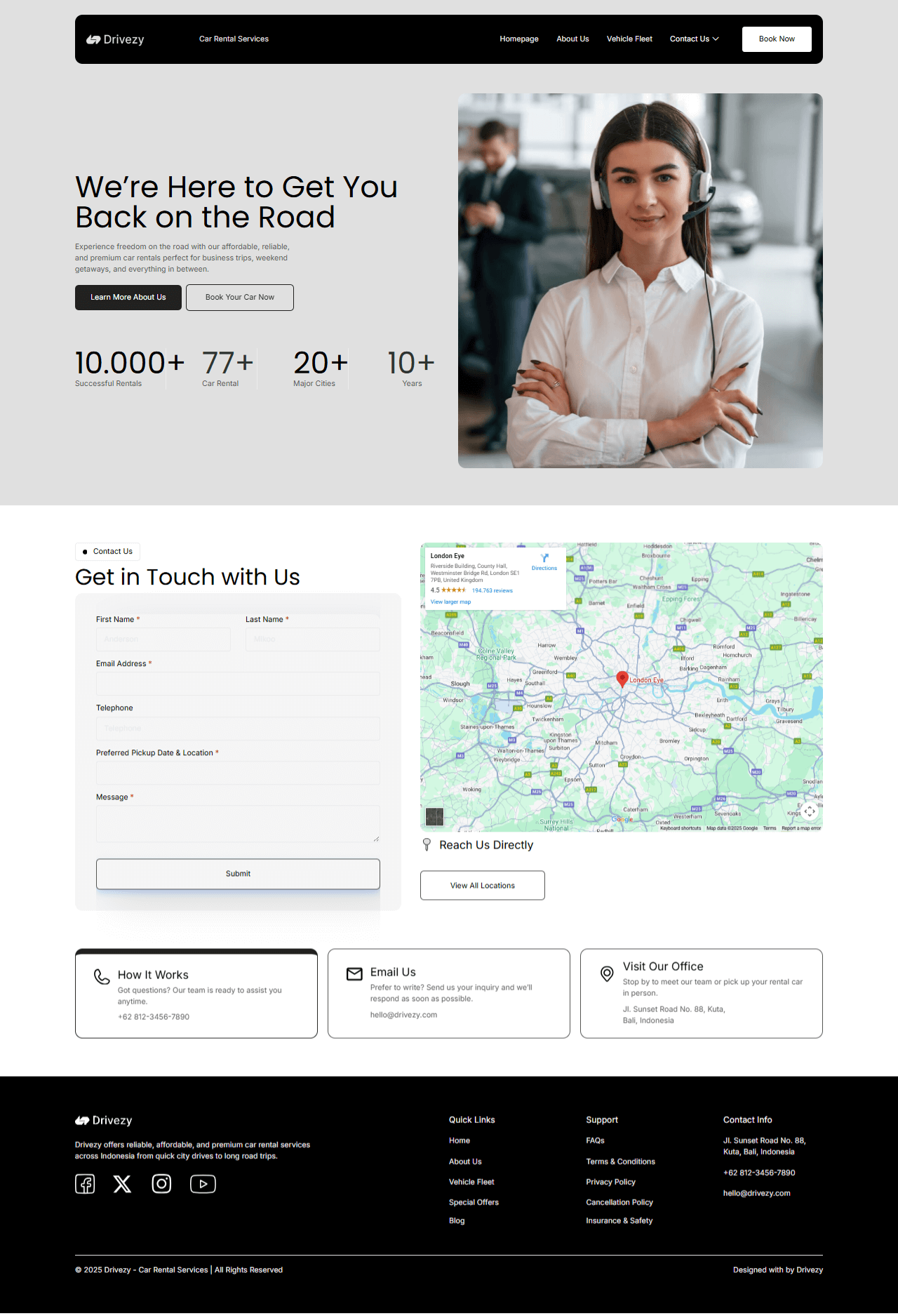 Stop by to meet our team or pick up your rental car in person.